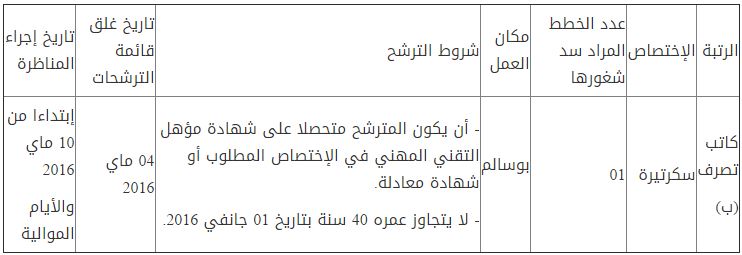 ملاحظة : يعتبر ملغى كل ملف يصل إلى المعهد الوطني للزراعات الكبرى بعد أجل يوم 04 ماي 2016 (يتم اعتماد ختم مركز البريد أو تاريخ التسجيل بمكتب الضبط لتحديد ذلك)، كما يرفض وجوبا كل ملف لا كما يرفض وجوبا كل ملف لا يحتوي على جميع الوثائق المطلوبة.