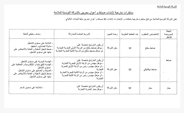 وعلى المترشحين الذين تتوفر فيهم الشروط المطلوبة ايداع ملف ترشحهم بمكتب الضبط المركزي للشركة التونسية للملاحة او ارسالها عبر البريد برسالة مضمونة الوصول الى العنوان التالي: (الشركة التونسية للملاحة 05 شارع داغ همارشولد تونس 1001).