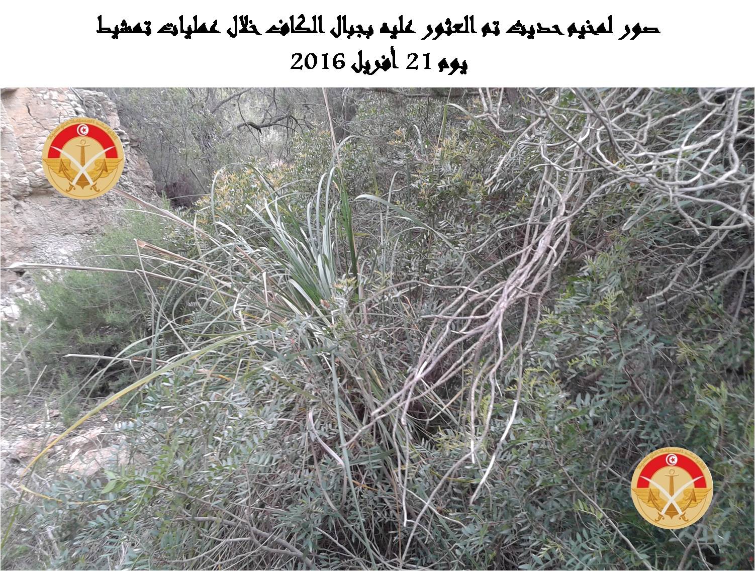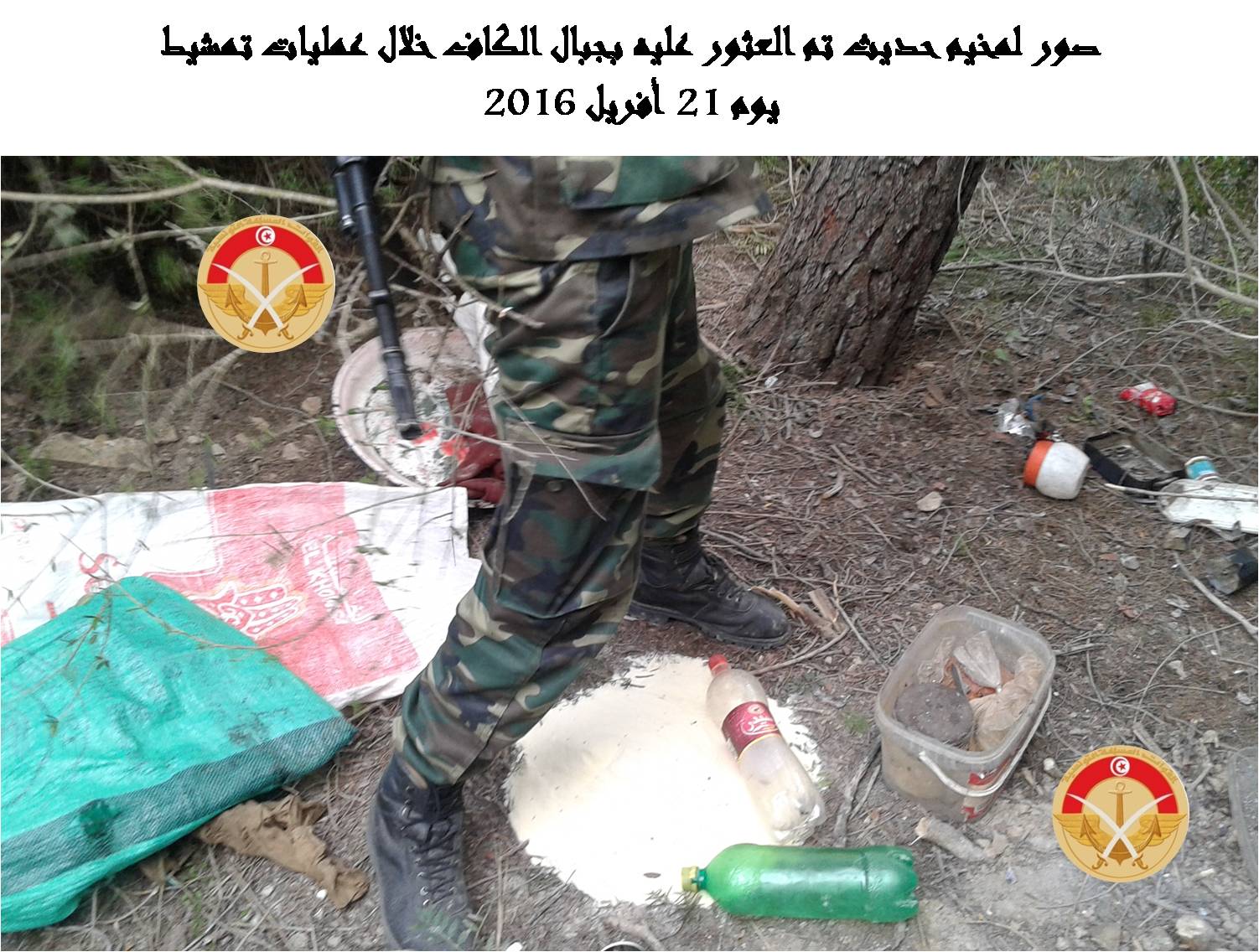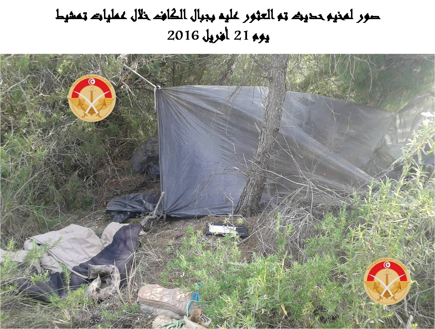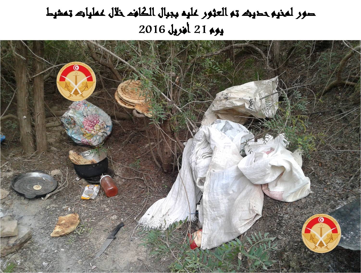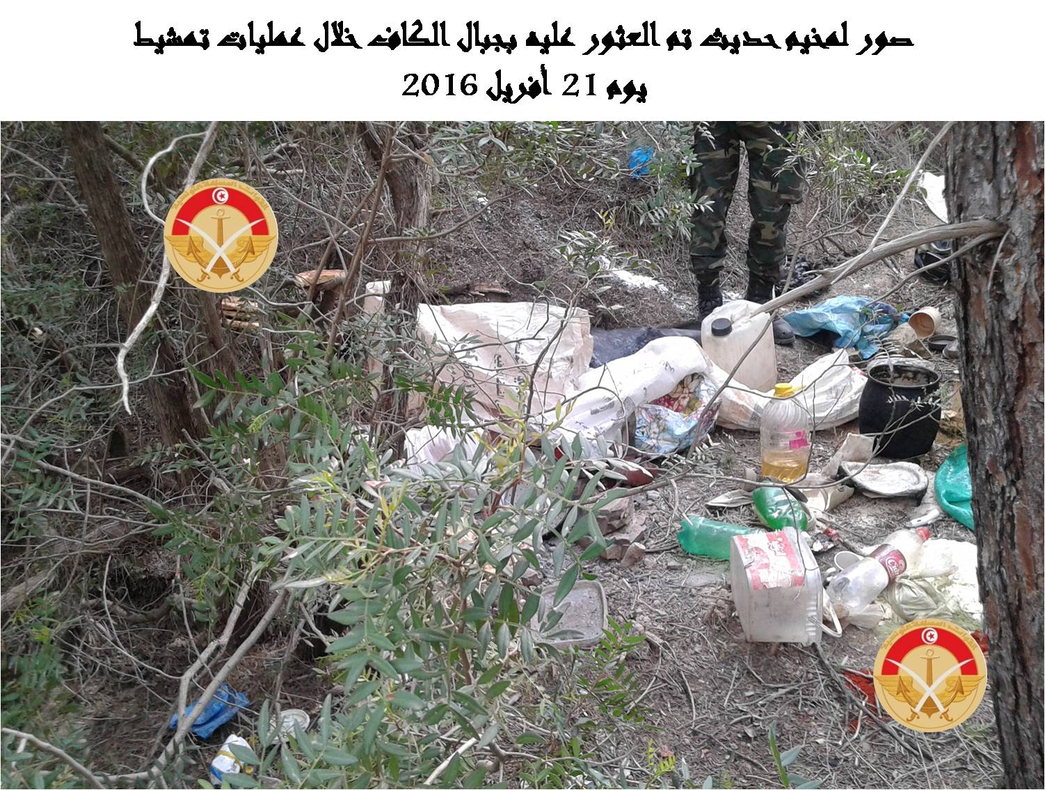 قالت وزارة الدفاع، في بلاغ لها، أنّ الوحدات العسكرية تمكنت، يوم الخميس 21 أفريل 2016، أثناء عمليات التمشيط بجبل ورغة بالكاف من الكشف عن مخيم لمجموعة إرهابية بصدد الإنجاز.