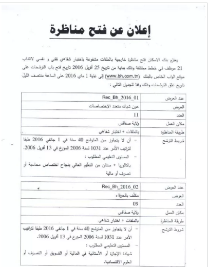 وتمّ تحديد أخر أجل لقبول الملفات يوم 1 ماي 2016.