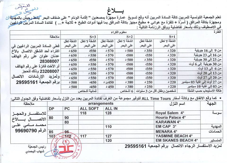 وأكّدت الجمعية أنّ أسعار الاصطياف تفاضلية، ويمكنكم الإطلاع عليها بالروزنامة التالية، والتي تضمّنت فترة الاصطياف.