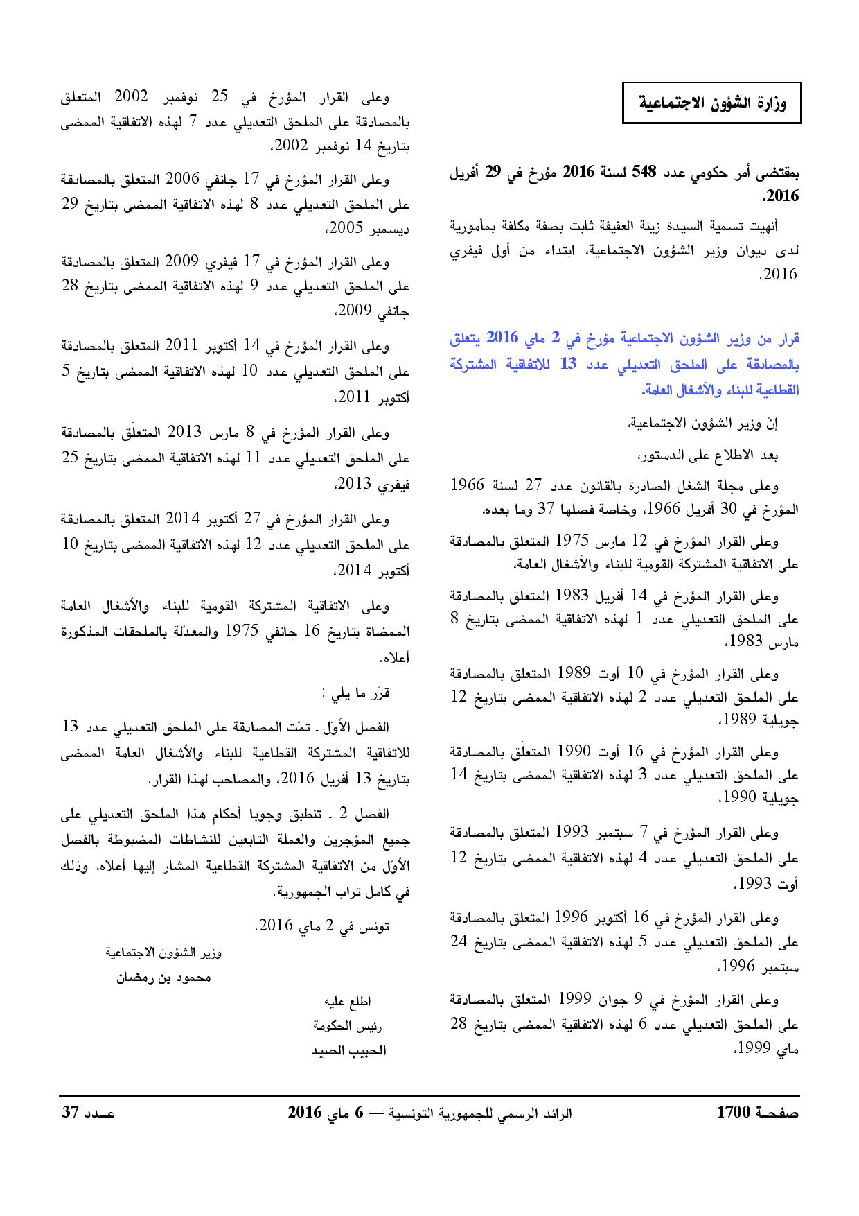سيقع بداية الأسبوع المقبل إمضاء الملحقين التعديلين للإتفاقيتين المشتركتين لوكالات الأسفار والنزل والسياحة ل ...