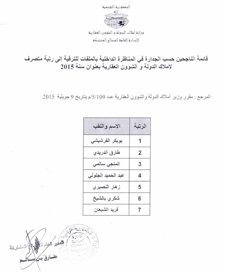 زووم - أعلمت وزارة أملاك الدولة والشؤون العقارية، اليوم الاثنين 23 جانفي 2017، أنّه تقرّر إجراء تعيينات جديدة.