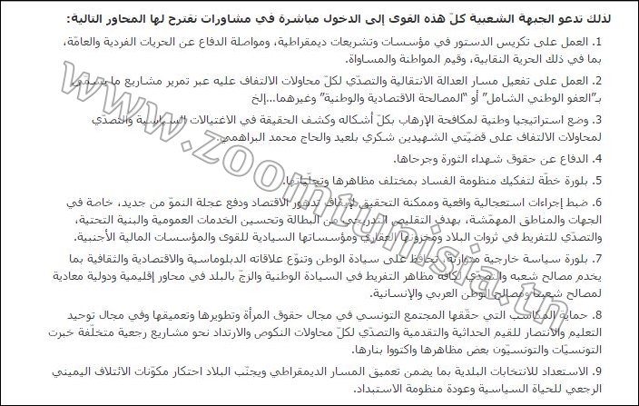 زووم - شرع المجلس المركزي للجبهة في الاتصال بمختلف القوى الديمقراطية من أجل التشاور حول المبادرة السياسية "مبادرة من أجل الإنقاذ والبناء" التي أقرتها الندوة الوطنية الثالثة للجبهة الشعبية المنعقدة أيام 29 و30 أفريل وغرة ماي 2016.