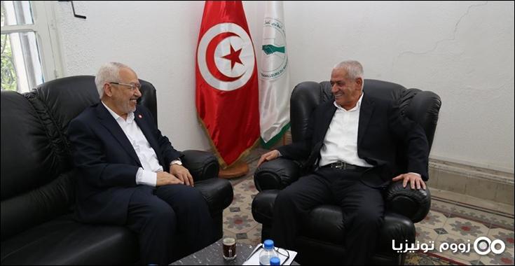 زووم - اِلتقى رئيس حركة النهضة، راشد الغنوشي ، عشية اليوم الجمعة 13 ماي 2016 ، بالأمين العام للاتحاد العام التونسي للشغل، حسين العباسي .