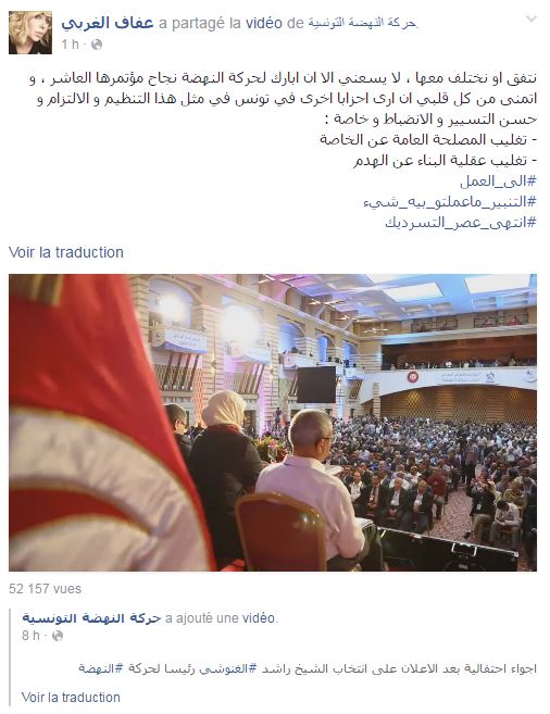 يُذكر أن حركة النهضة عقدت مؤتمرها العاشر مؤخرا، والذي أفرز في ختام أشغاله يوم أمس الأحد عن تجديد الثقة في راشد الغنوشي كرئيس لحركة النهضة وانتخاب ثلثي أعضاء مجلس شورى الحركة.