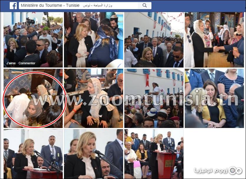 وقد نشرت وزارة السياحة على صفحتها الرسمية على الفايسبوك مجموعة من الصور لهذا الحدث، إلاّ أنّها حذفت فيما بعد إحدى الصور والتي كانت فيها الوزيرة تقوم بإشعال الشموع داخل الكنيس، والذي يُمثل أحد طقوس الحج بالغريبة.