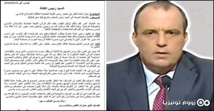وتابع بن عمران "لا يجوز في القرن الـ21 وزمن الجمهورية الثانية أن يكلّف حزب نداء تونس، الذي يزخر بالكفاءات، شخصا لترؤس لجنة الإصلاح الإداري في البرلمان لا أحد متأكّد من أنه أنهى دراسته الابتدائية“، مضيفا "يبدو أنه كان يشتغل "حماصّا" قبل انتخابه!!".