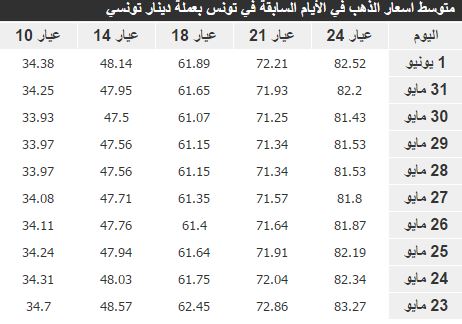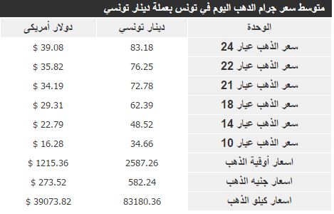هذا وشهدت الأسعار هذا اليوم ارتفاعا طفيفا في جميع العيارات، وذلك وفق ما يبينه الجدول التالي :