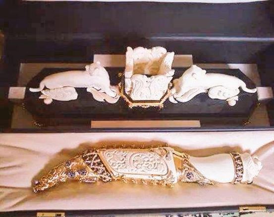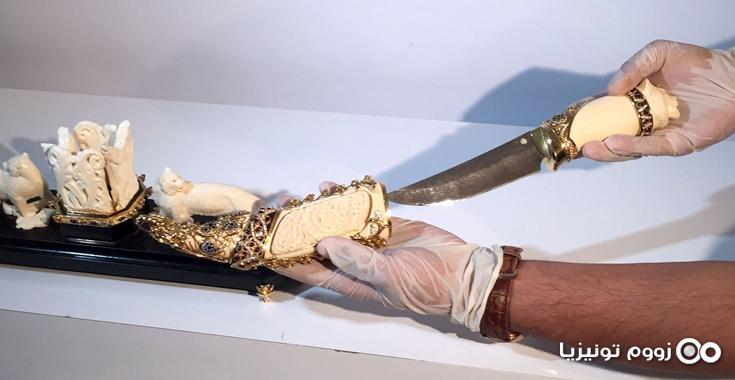 وبعد تفتيش المنزل عثرت القوات على الخنجر المصنوع من العاج والمرصع بالأحجار الكريمة لدى رجل الأعمال الذي اشتراه بملبغ 4 ملايين و600 ألف دولار أمريكي، قبل قرابة 3 أشهر من ليبيا وأراد بيعه بعشرة ملايين دولار لرجل أعمال سعودي.