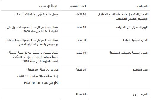 المرحلة الأولى : يتم ترتيب المترشحين حسب المقاييس التالية :