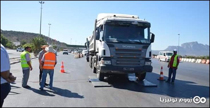 وتعمل إدارة استغلال وصيانة الطرقات بالوزارة بالتنسيق مع المصالح الجهوية للتجهيز ببن عروس وإدارة حرس المرور على مقاومة ظاهرة تجاوز الشاحنات الثقيلة للحمولة القانونية المسموح بها وذلك حفاظا على السلامة العامة بالطرقات المرقمة،خاصة بعد أن بلغت هذه الظاهرة نسبة 85 بالمائة على المستوى الوطني والتي أصبحت تمثل مشكلا حقيقيا خاصة على مستوى السلامة المرورية وأيضا لكونها السبب الرئيسي في اهتراء وتدهور البنية التحتية لطرقات الدولة والذي يكلفها خسائر باهظة .