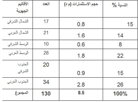 جدول توزيع المشاريع حسب الأقاليم الجهوية