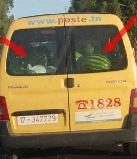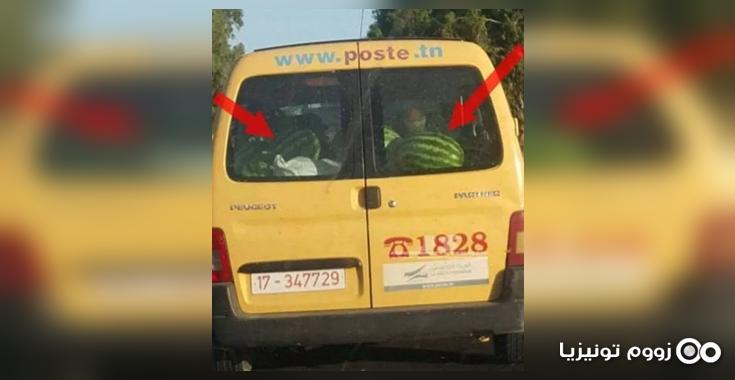 حيث ظهرت السيارة في الصورة وعلى متنها "دلاع"، علّق عليها رواد الفضاء الاجتماعي قائلين "البريد التونسي يطور خدماته من حمل الرسائل إلى حمل الدلاع".