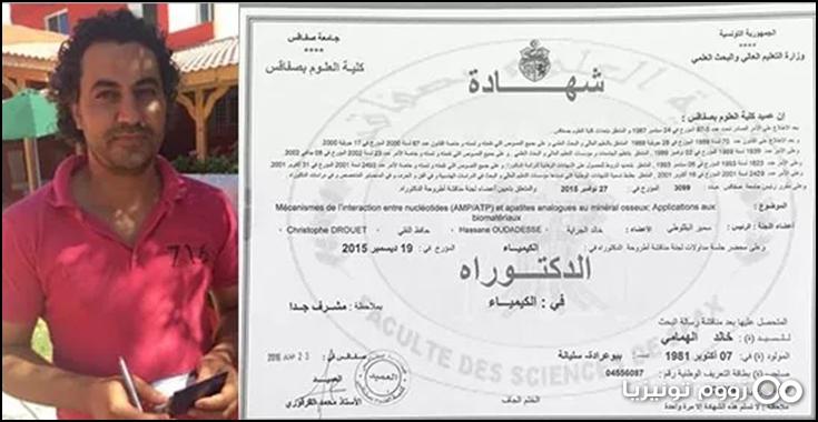 زووم - تداول روّاد مواقع التواصل الاجتماعي، يوم أمس ، قصة شاب يُدعى خالد الهمامي مُتحصّل على دكتوراه في الكيمياء بدرجة مشرف جدا لكنه يعمل نادلاً لمدّة 12 ساعة في اليوم الواحد.
