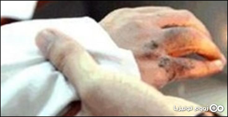 وقد تعمّدت حرقه في يده اليمنى و ساقه اليسرى و في وجهه على مستوى خده الأيسر، في حين نُقِل من قِبل جدته إلى المستشفى الجامعي بسهلول أين تبيّن أنّه يُعاني من حروق من الدرجة الثانية.