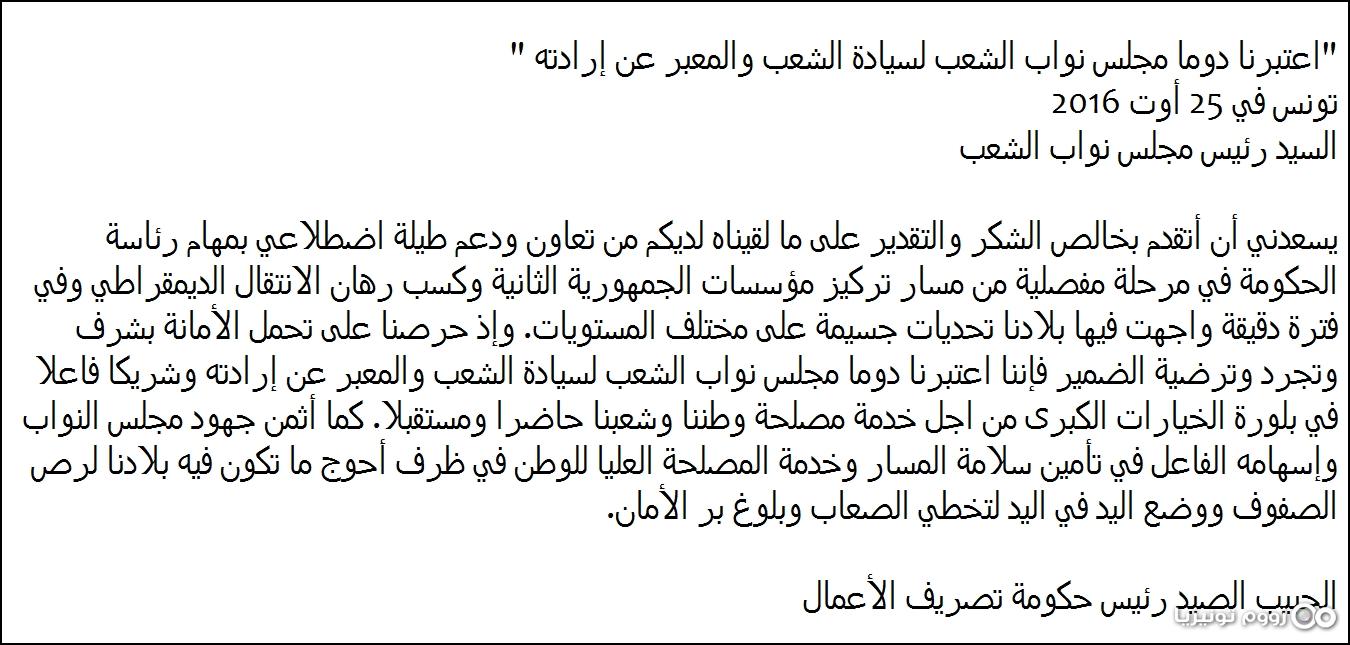 نص الرسالة السرّية التي بعثها الحبيب الصّيد لرئيس مجلس النوّاب