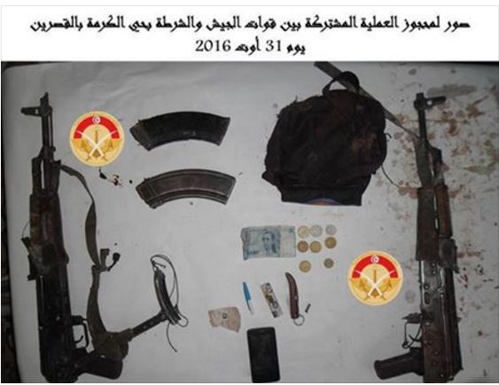وهذه صور للأسلحة المحجوزة في عملية حي الكرمة بالقصرين: