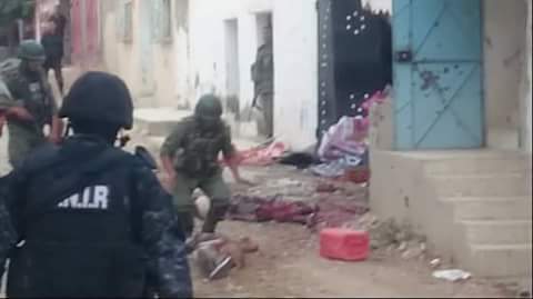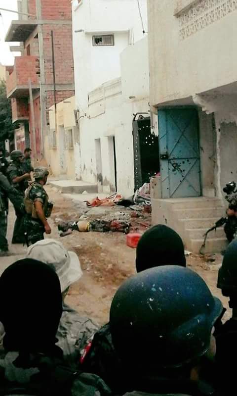 وفي ما يلي صورة لجثث الإرهابيين الإثنين اللذين تمّ القضاء عليهما في حي الكرمة من ولاية القصرين فجر اليوم: