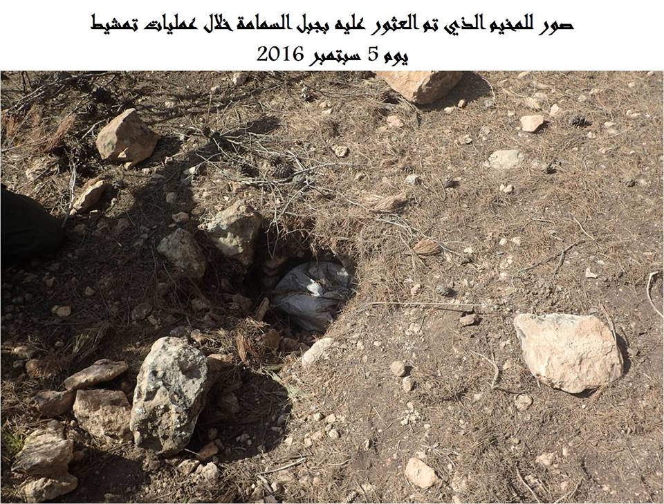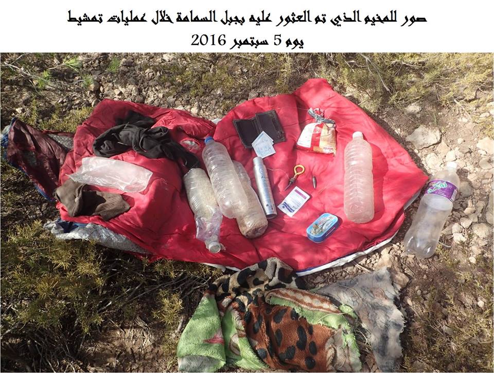 بالصور/ العثور على مخيم للارهابيين خلال تمشيط لجبل سمامة