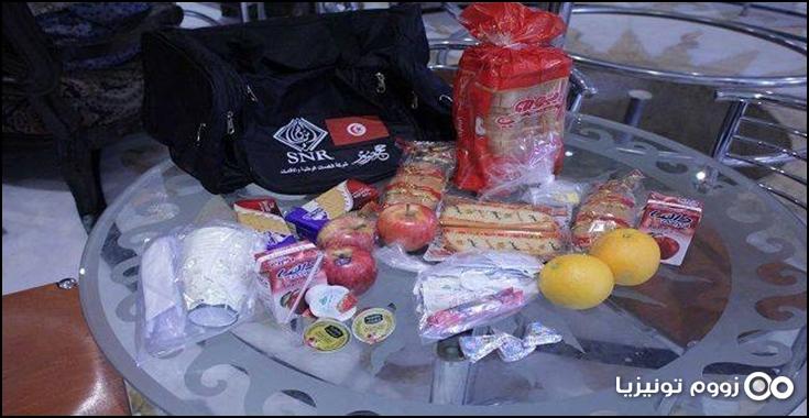 وتكفّل المرافقون بتوزيع الإعاشات التي وضعت في حقائب سفر زرقاء ممهورة بعلم تونس وبشعار شركة الخدمات الوطنية والإقامات، كما أمنّوا إيصال حقيبة الإعاشة إلى اصحابها بالغرفة ووفق جرد الأسماء الواردة في قاعدة البيانات المخصص لكلّ رحلة جوية وحسب فرق المؤطرين.