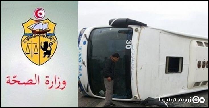 زووم - أصدرت وزارة الصّحة ، منذ قليل، بلاغ إثر حادث اِنقلاب حافلة سيّاح اليوم الخميس 15 سبتمبر 2016 بالطريق السيّارة تونس سوسة على مستوى المدخل الشمالي للحمامات .