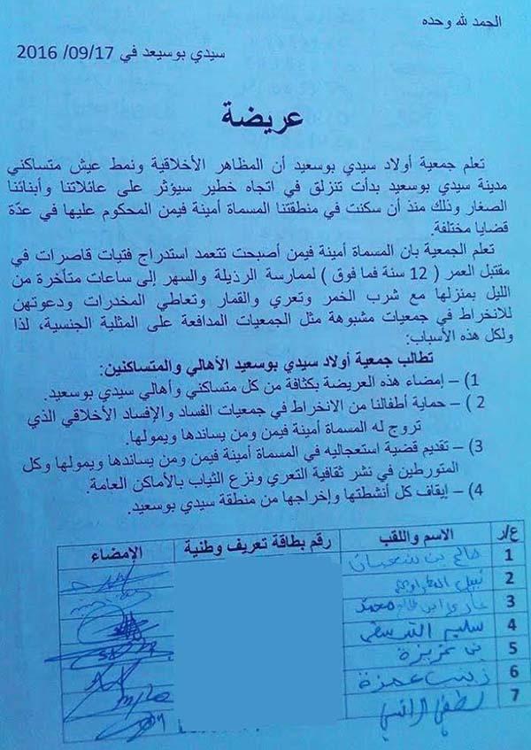 هذا وطالبت الجمعية بتقديم قضية استعجالية ضد أمينة فيمن ومن يساندها ومن يمولها مع ايقاف كل أنشطتها وإخراجها من المنطقة.