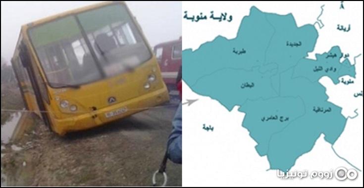 وقد أسفر الحادث عن إصابة تلميذين ووليّين وسائق الحافة بجروح خفيفة تمّ نقلهم إلى المستشفى المحلي بطبربة، كما خلّف الحادث حالة من الهلع والفزع في صفوف التلاميذ.
