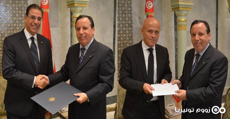 خميس الجهيناوي يتسلم نسخة من أوراق اعتماد سفيرين جديدين بتونس
