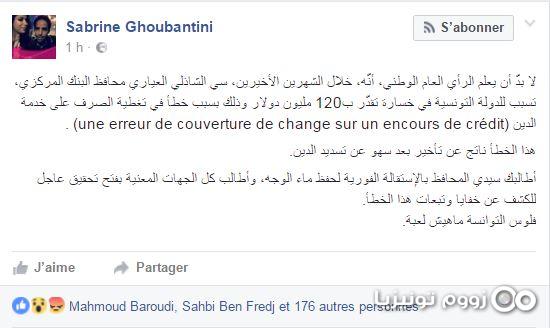 ويأتي ذلك ، وفق تدوينة النائبة على حسابه الخاص على الفايسبوك، بسبب خطأ في تغطية الصرف على خدمة الدين، والذي بدوره ناتج عن تأخير بعد سهو عن تسديد الدين.