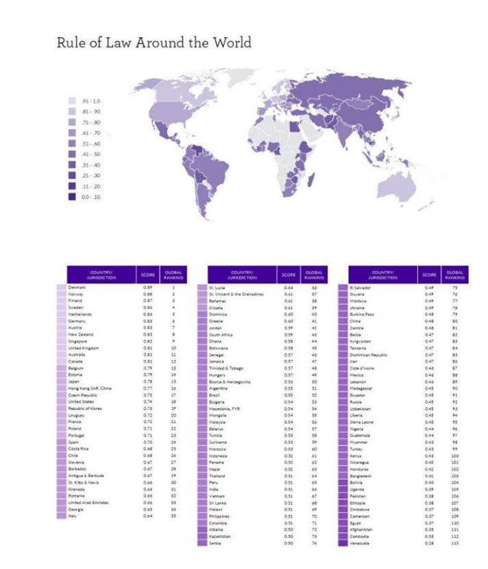 حيث احتلّت مصر المرتبة 56 عالميا في مؤشر "سيادة القانون".