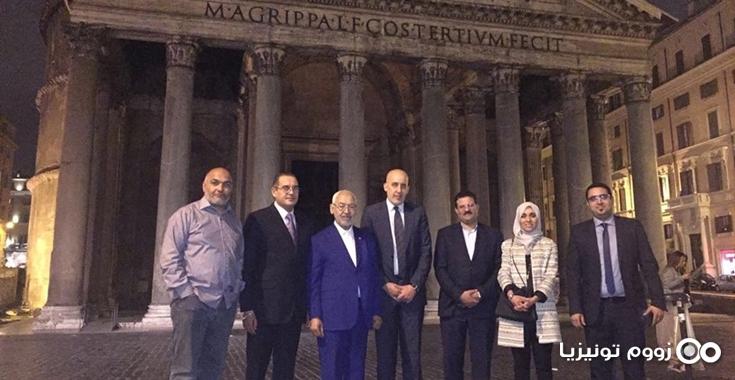 ويصاحبه في هذه الزيارة وفد مكون من مستشار رئيس الحركة للعلاقات الخارجية رفيق عبدالسلام، ونائبي حركة النهضة عن إيطاليا إيمان بن محمد وأسامة الصغير.