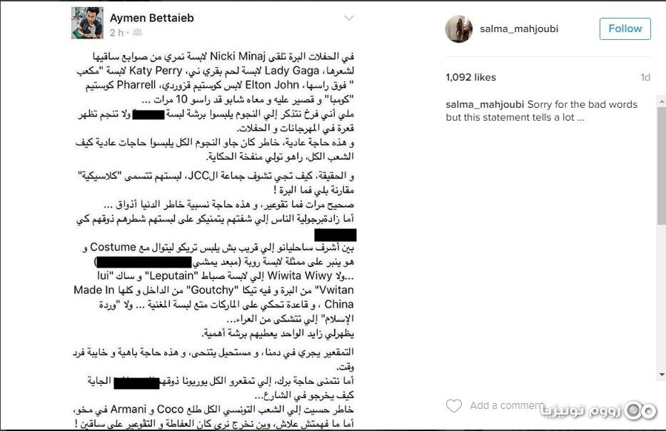بعد اِنتقادها بشدّة على فستانها، سلمى المحجوبي تنشر ردّ فيه ألفاظ نابيّة !