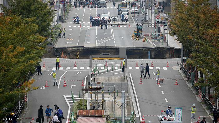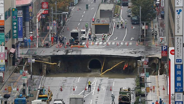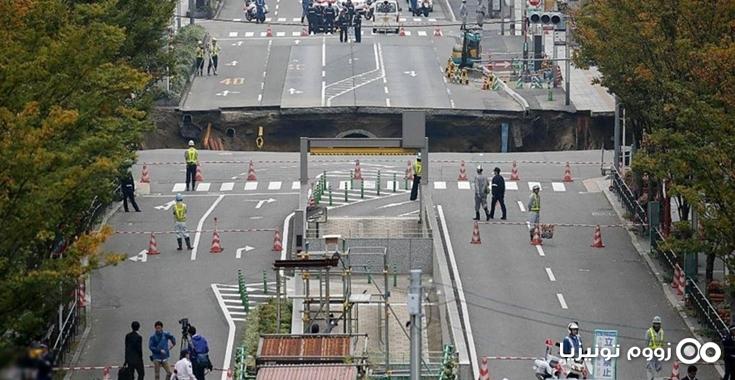 حيث انشق الطريق وخلف وراءه حفرة كبيرة بلغ طولها 20 مترا، وبداخلها مجرى مائي، دون تسجيل اي إصابات أو قتلى.