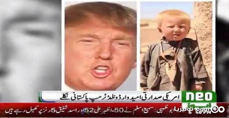 فقد زعمت القناة الإخبارية الباكستانية "Neo News" من خلال أحد التقارير أن ترامب وُلد لأبوين باكستانيين في وزيرستان في عام 1946 وكان يحمل اسم داوود إبراهيم خان.