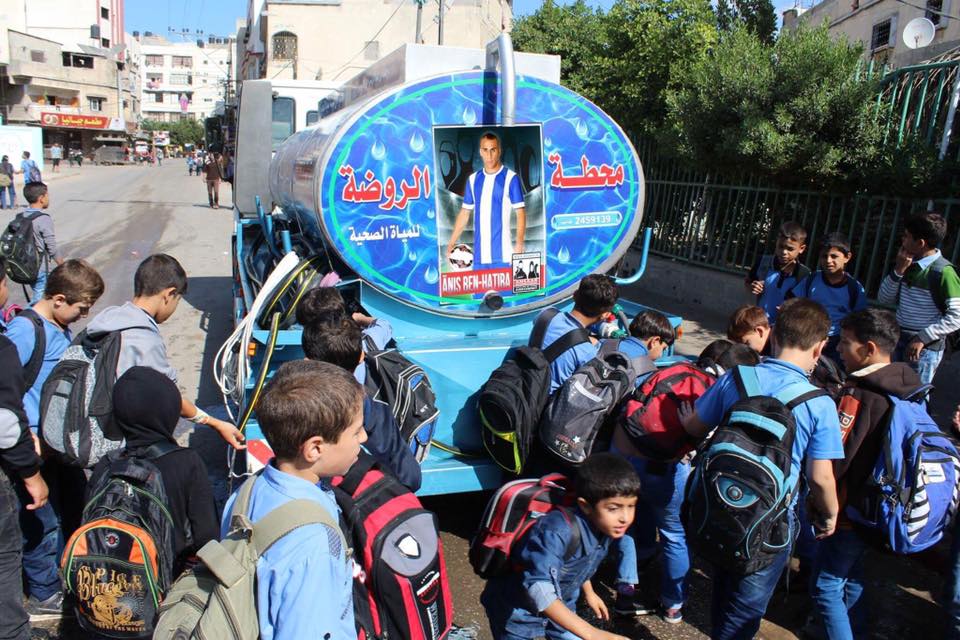 ونشر بن حتيرة على صفحته على الفايسبوك صورا للصهريج وحوله أطفال غزة وقد ارتسمت على وجوههم ابتسامة، مصاحبا تلك الصور بتعليق "الحمد لله".