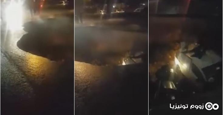 ويأتي هذا بسبب انهيار أرضي أحدث فجوة عميقة في الأرض مما أسفر عن وقوع خمس سيارات فيها وإصابة 11 شخاص.
