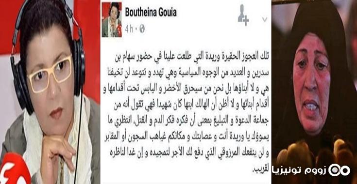 يُذكر أنّ تدوينة تداولتها وسائل الإعلام قيل أنّها لبثينة قويعة أساءت فيها بشكل جارح لوالدة الشهيد وريدة ولرئيسة هيئة الحقيقة والكرامة سهام بن سدرين.
