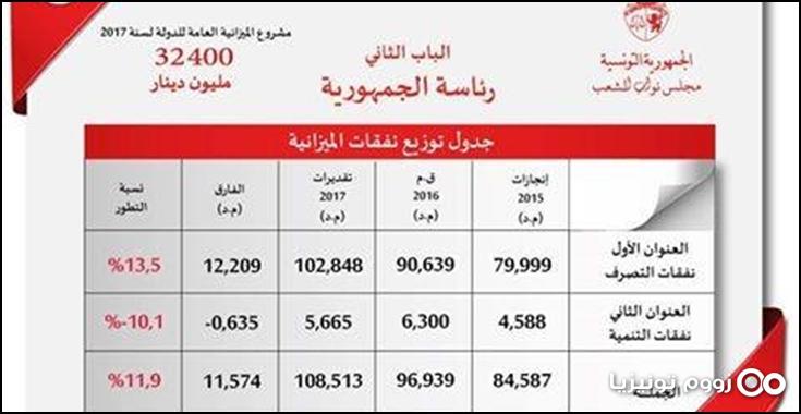 وقد تمّ التصويت على ميزانية رئاسة الجمهورية لسنة 2017 بـ113 نعم17 إحتفاظ و دون رفض.