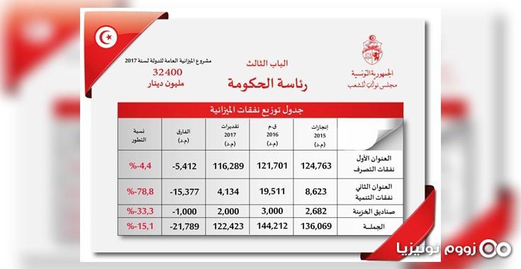 هذا وقد تمّ النظر في مشروع ميزانية رئاسة الحكومة لسنة 2017 والمصادقة عليه بــ :