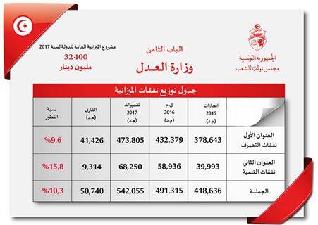 وقد تم، خلال هذه الجلسة، المصادقة على مشروع ميزانية وزارة العدل لسنة 2017 بـ :