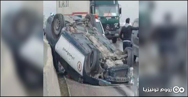 زووم - جدّ اليوم الخميس 24 نوفمبر 2016 حادث مرور تمثّل في اِنقلاب سيارة حرس ديواني على مستوى قنطرة حلق الوادي- رادس.