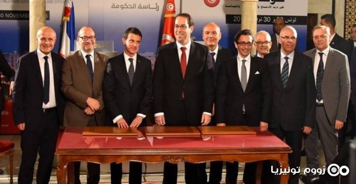 وتشمل الاتّفاقيات الموقّعة بالخصوص، اتفاق متعلق بالدعم المالي الفرنسي مقدم من الوكالة الفرنسية للتعاون لفائدة المخطط الخماسي 2016-2020 واتفاق تمويل لفائدة الديوان الوطني للتطهير لتركيز محطات تطهير جديدة بقيمة مالية تقدر بـ 60 مليون يورو، واتفاق لفائدة المجمع الكيميائي التونسي تهدف إلى التأهيل البيئي لعدد من وحدات إنتاج الفسفاط بقيمة مالية تقدر بـ 45 مليون يورو. كما تم إمضاء بروتوكول اتفاق لفائدة الاتحاد البنكي للتجارة والصناعة لتمويل مشاريع تهم الطاقة المتجددة والفاعلية الطاقية واتفاقية لفائدة المركز المالي لباعثي المشاريع علاوة عن اتفاقية لتمويل برنامج أقلمة الأوساط الريفية مع التغيرات المناخية ومقدارها 50 مليون يورو.
