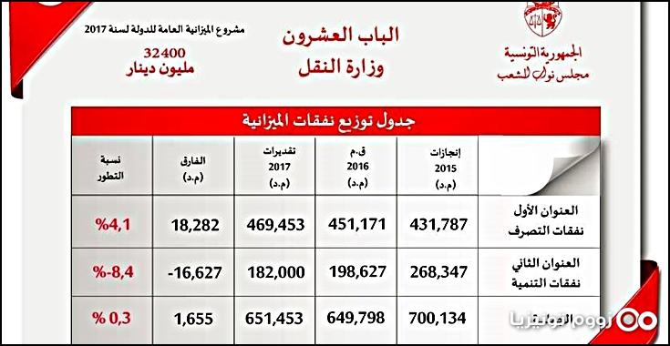 المُصادقة على مشروع ميزانية وزارة النقل لسنة 2017
