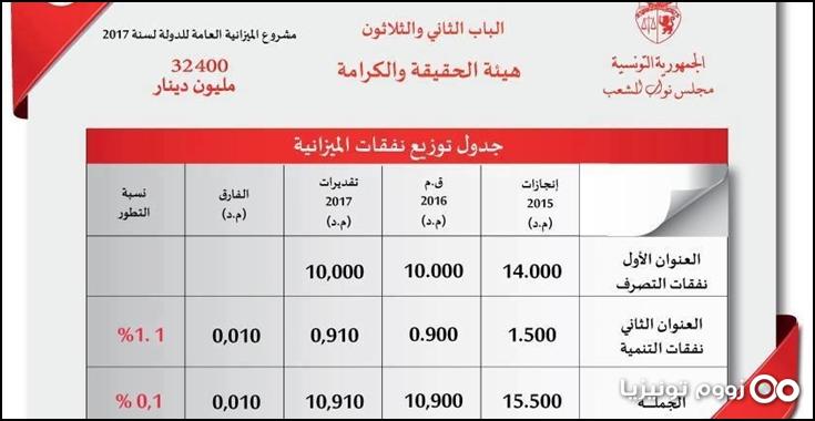 وقد تمّ التصويت على مشروع ميزانية هيئة الحقيقة والكرامة لسنة 2017 بـ 121ـنعم 21 إحتفاظ 28 رفض.