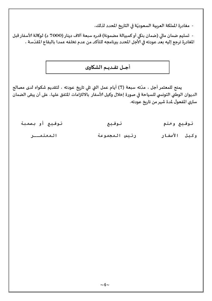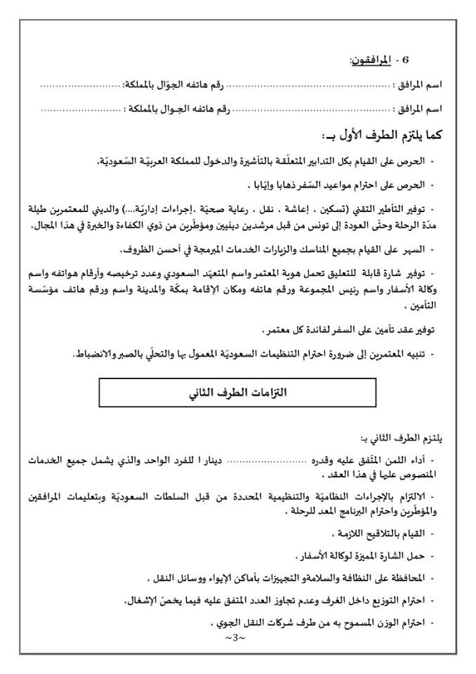 وبناء على هذا الحرص دعت الوزارة كل من يعتزم أداء مناسك العمرة إلى ضرورة الإطّلاع على العقد المرافق وإمضائه والاحتفاظ بنسخة منه وذلك للحدّ من التجاوزات الممكن حصولها.