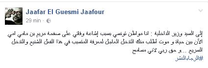 وطلب جعفر القاسمي، في بلاغ له، من وزير الداخلية التدخل العاجل والسريع لمعرفة المتسبب في هذا الفعل الشنيع قائلاً "وحق ربي ماني مسامح".