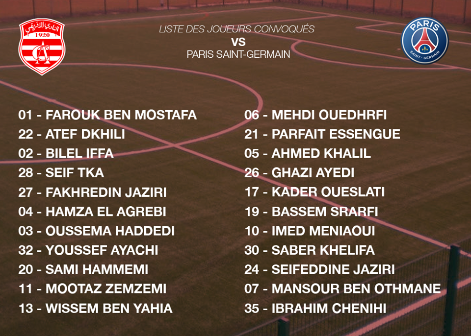 وفي ما يلي تشكيلة النادي الإفريقي التي ستواجه باريس سان جرمان :