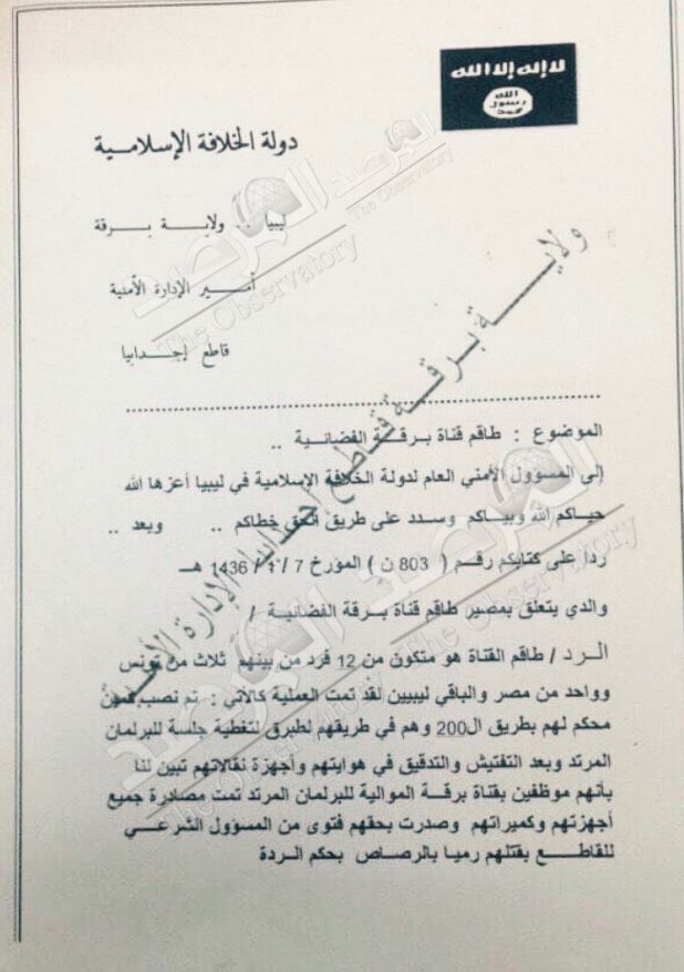 وتضمنت هذه المراسلة تقريرا حول مصير طاقم قناة برقة المختطف و الذى من ضمنه الصحفيين التونسيين نذير القطاري و سفيان الشواربي .