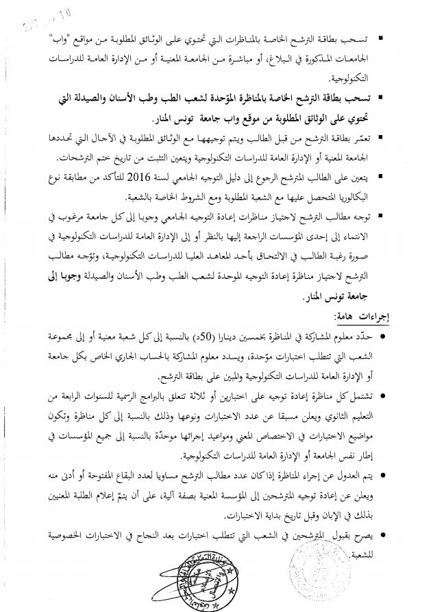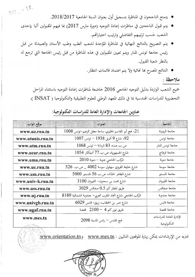 وللمهتمين يمكنهم الاطلاع على عناوين الجامعات والإدارة العامة للدراسات التكنولوجية ورزنامة مناظرات إعادة التوجيه :